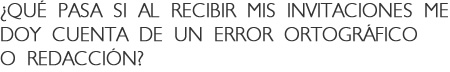 Es importante revisar cuidadosamente la ortografía y redacción de los textos cuando el diseñador envía la maqueta digital, porque esta es la instancia que tiene el cliente para todo tipo de correcciones (diseños y textos). En el caso que de percatarse de un error una vez recibida las invitaciones y deseas corregirlas, el costo por este concepto deberá ser asumido por el cliente. |