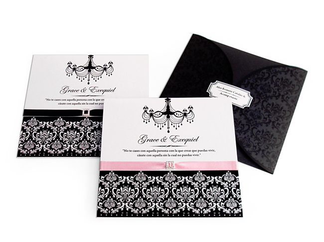 | Sobre pétalo impreso, parte tríptico impreso lámpara, Grace & Exequiel |