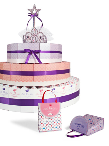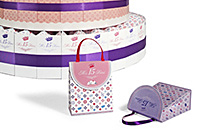 - Torta de cajas redonda 108 unidades, cuadradas y hexagonales 80 unidades.